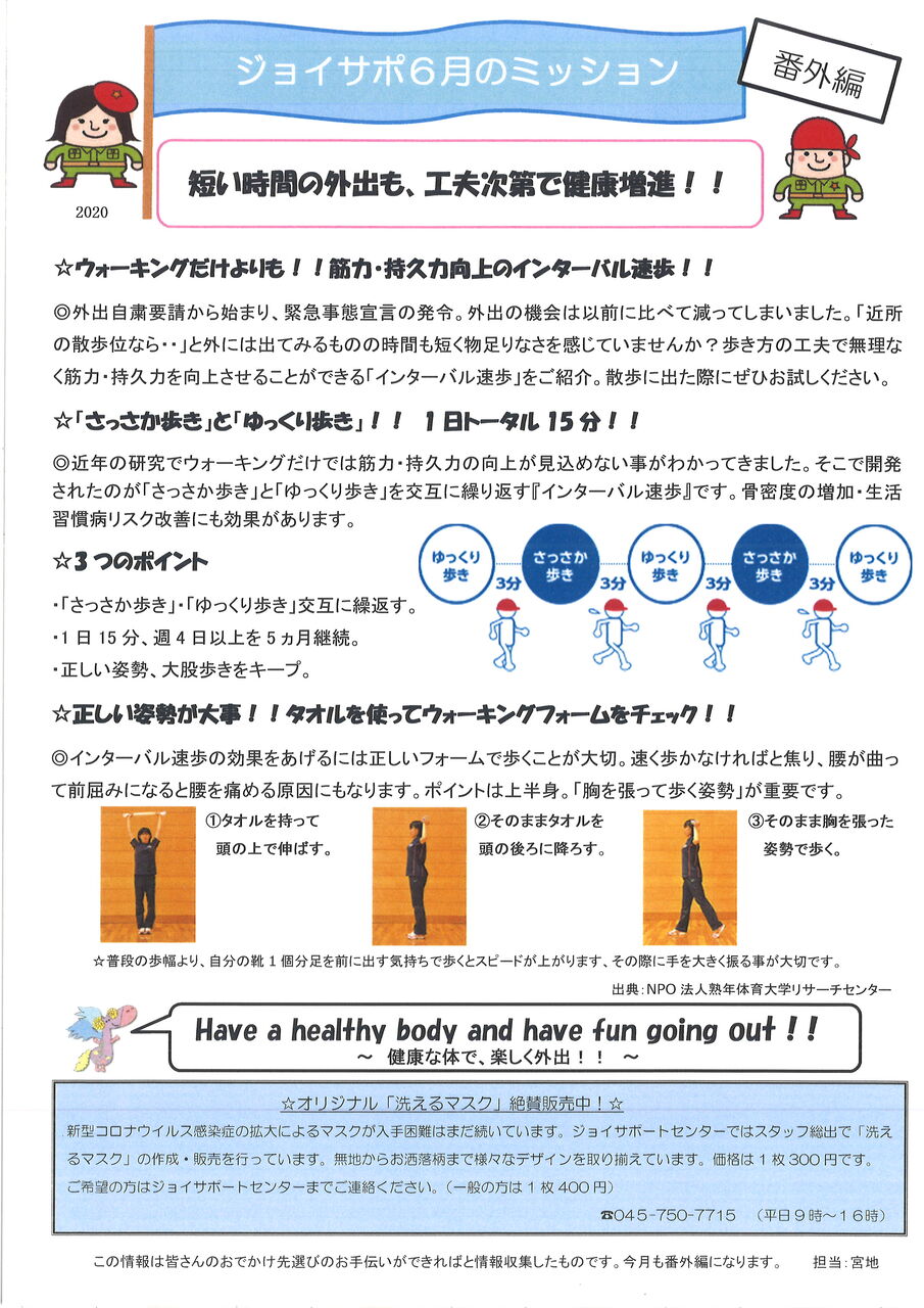 さて、今回のジョイサポミッションでは、短い時間の外出の際に、健康増進を目指します!