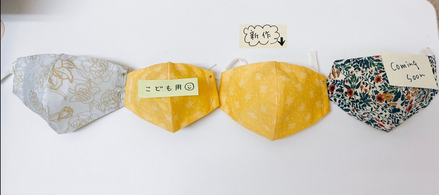 ご要望を受け、幼児〜小学校中学年くらいまでのお子様用に、子ども用マスクもつくりはじめました